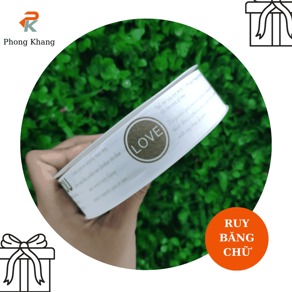 Ruy băng lụa Phong Khang trắng chữ love & miss dùng buộc hộp bánh kem